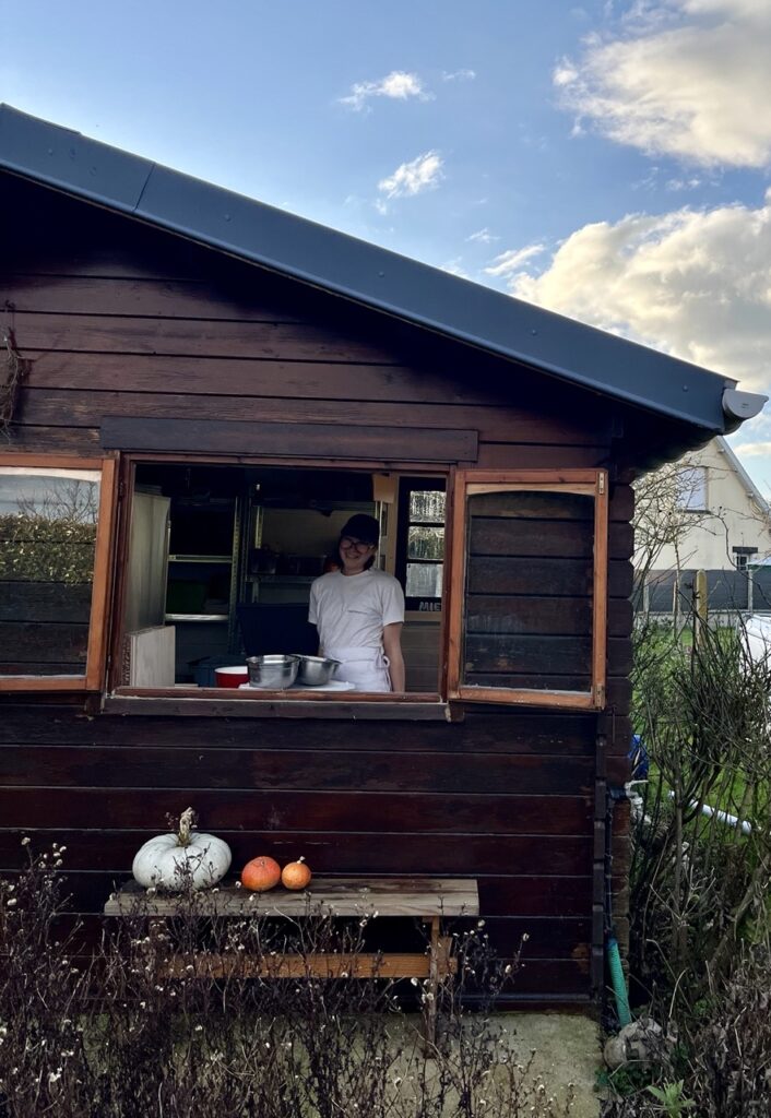 Sur les horaires d’ouverture, et uniquement si le portail est ouvert, vous êtes la bienvenue pour rentrer dans la cour et y trouver la cabane. J’y serai en train de travailler, et vous y retrouverez les produits disponibles à la vente. N’hésitez pas à commander (48h à l’avance) pour être certain d’y trouver ce que vous souhaitez.