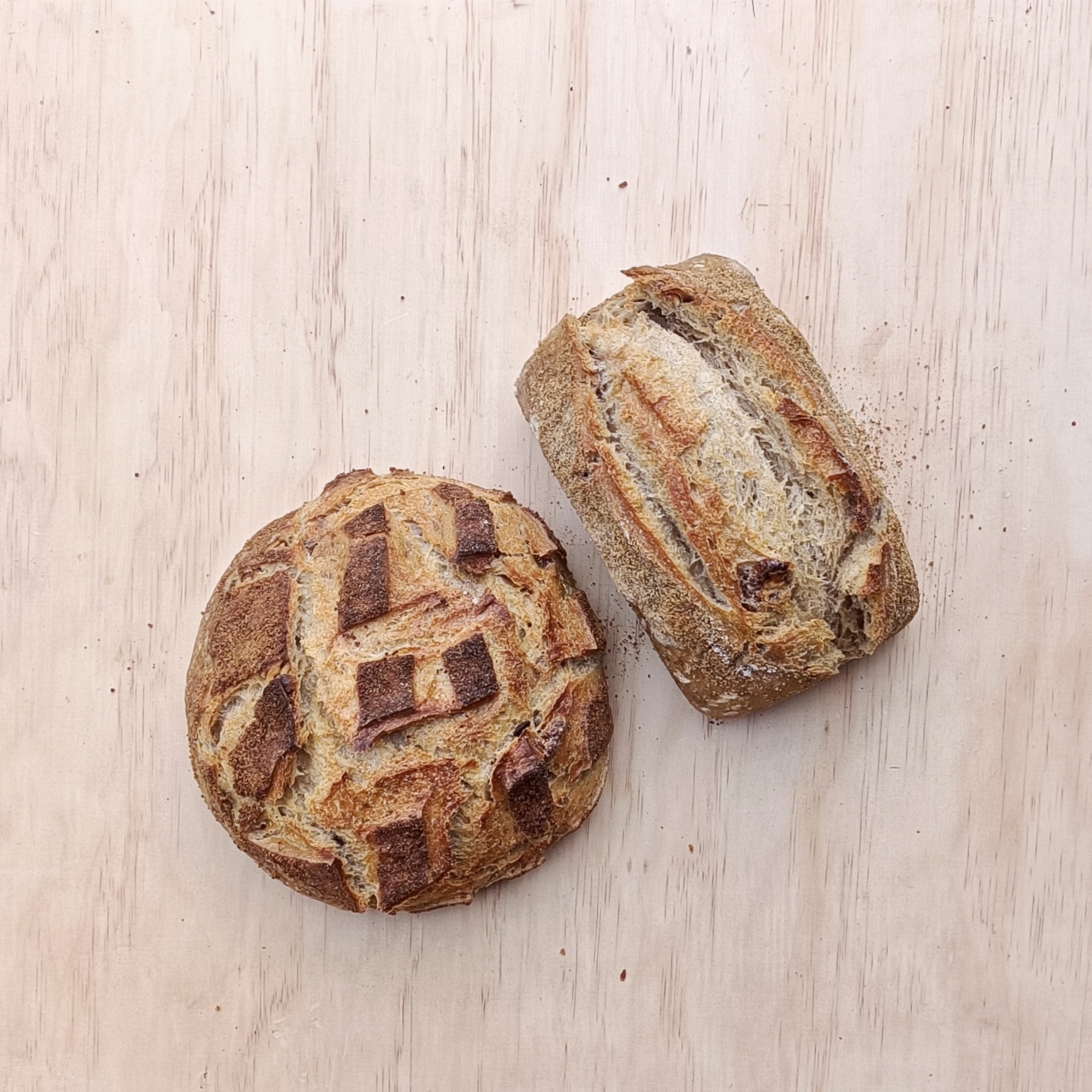 Les pains sont composés uniquement de farine BIO, d’eau filtrée, de levain naturel, de sel de mer et des diverses inclusions.
